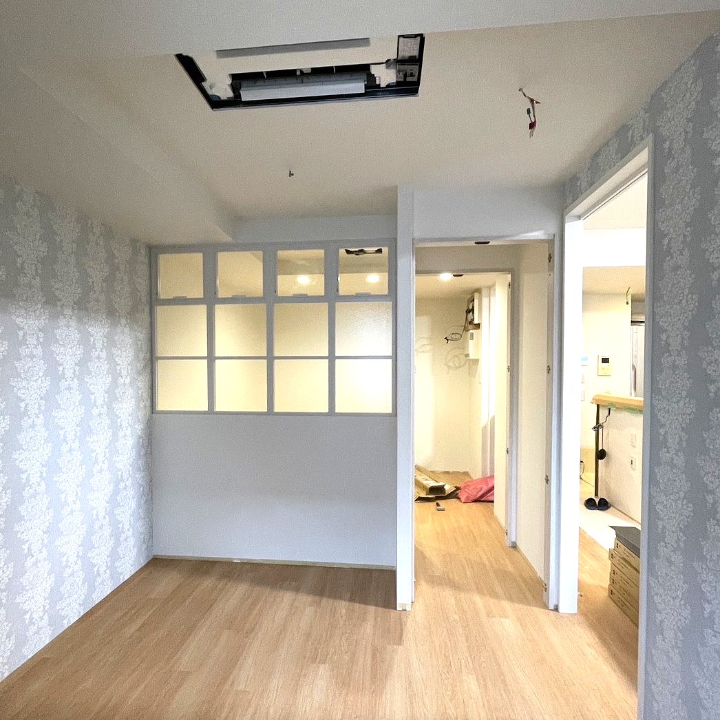 2部屋の間仕切り壁をガラスにして空間を一体化して洗練したスタイリッシュな雰囲気の部屋へ。