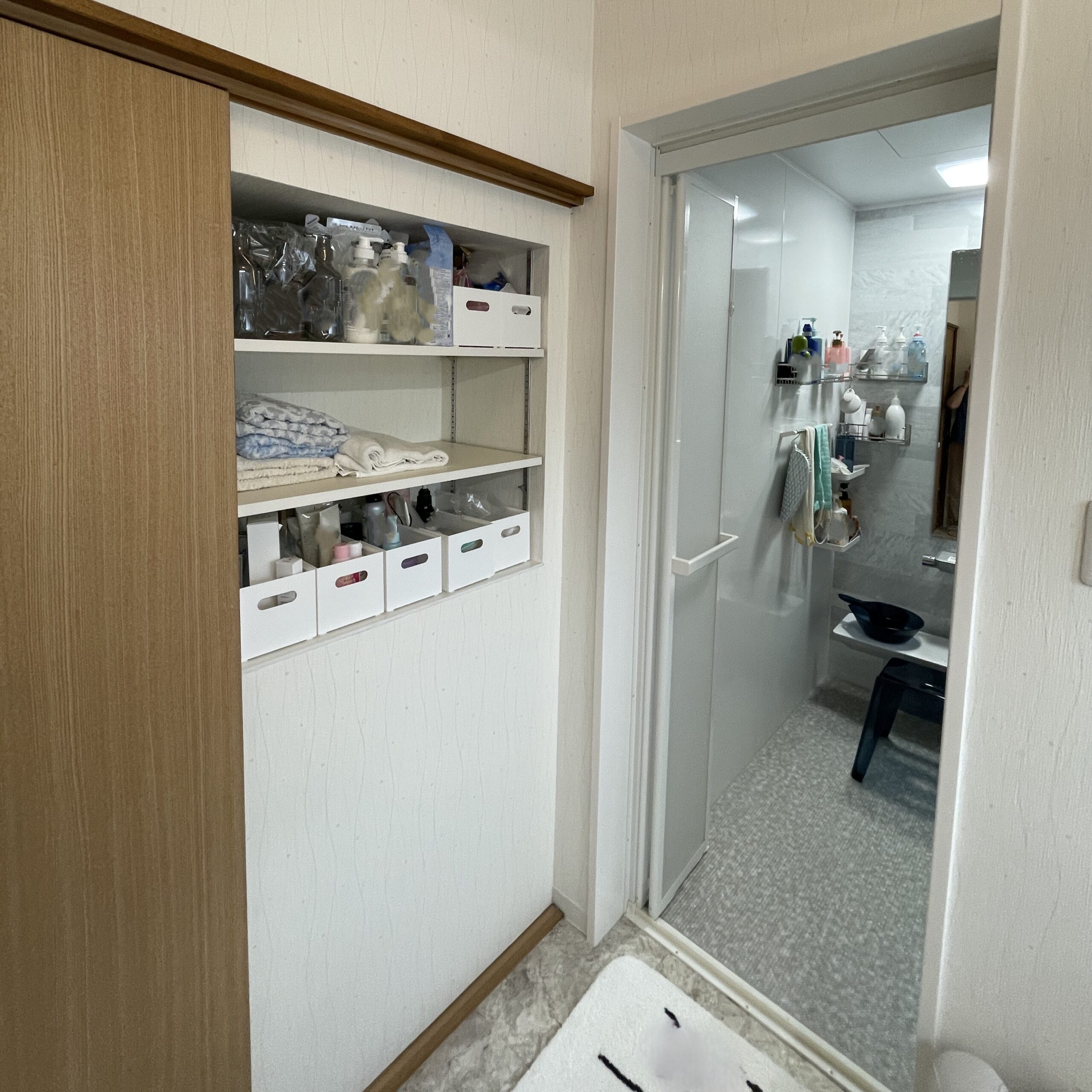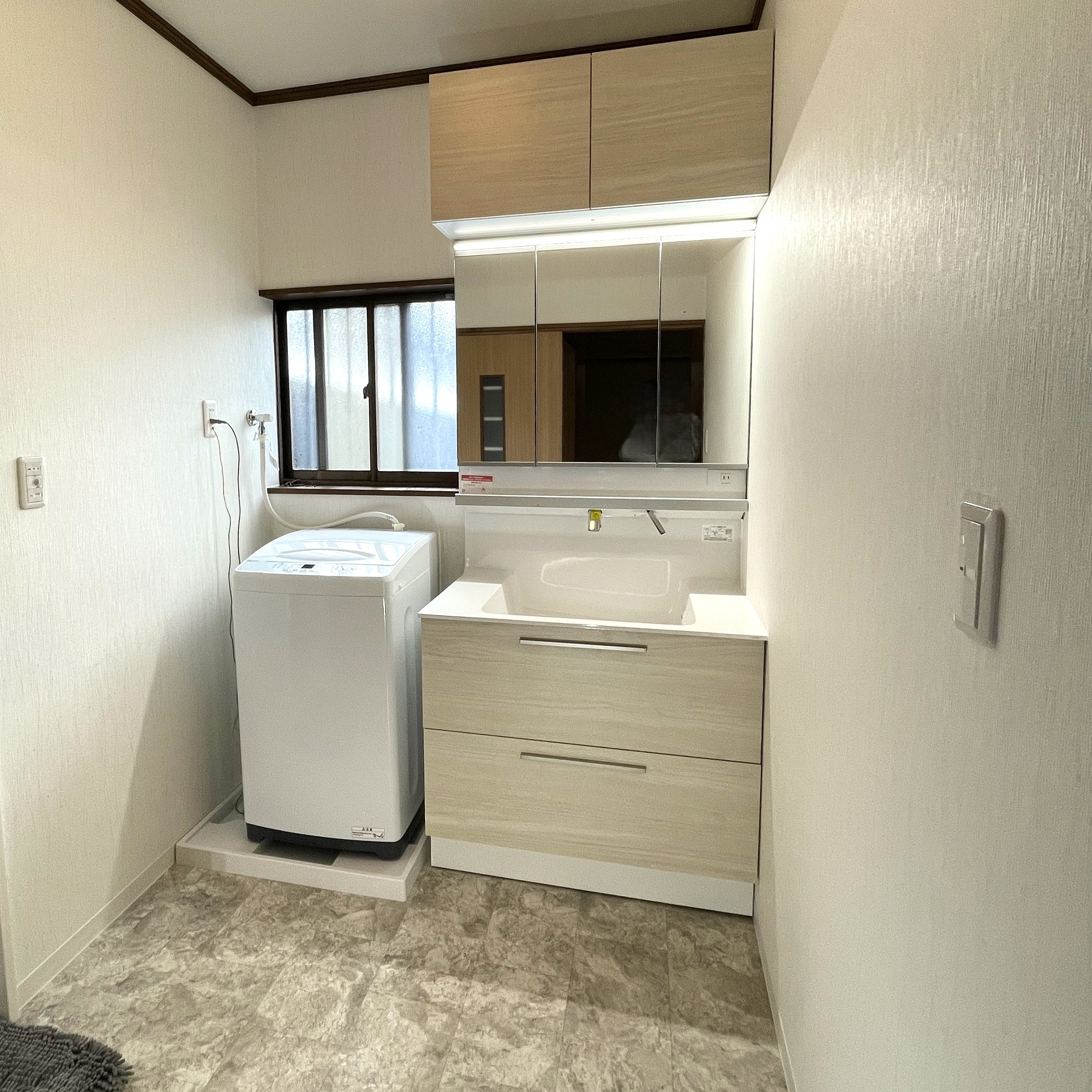 在来浴室はとても寒いので、ユニットバスに交換しました。 洗面所に収納を増やしたい。