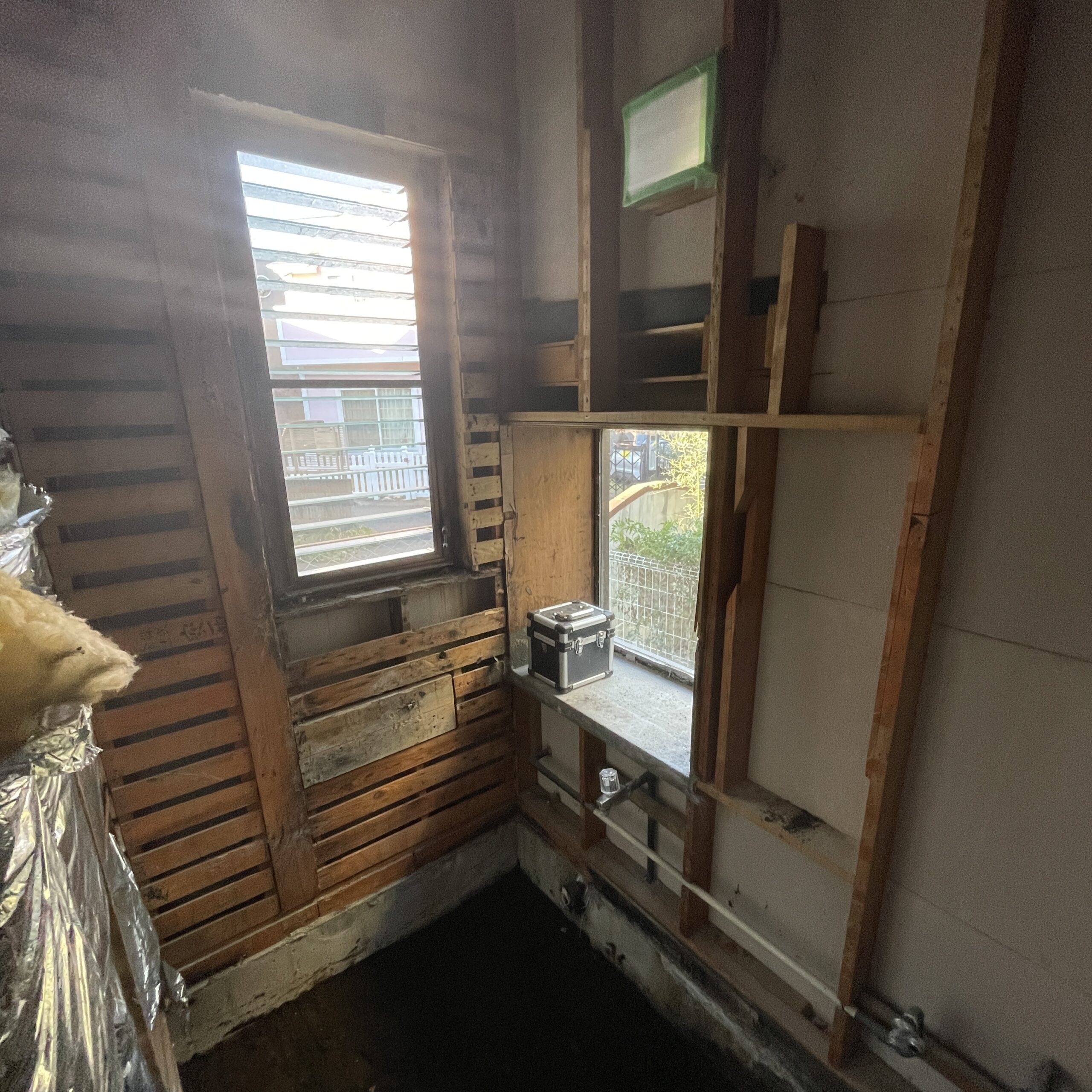浴室、洗面所が寒い、床が冷たい。 浴室に二面ある窓を一面にしたい。 洗面所の床にケアフロアーとアンダーレイの施工をしたことにより、 防音性、遮音性、衝撃吸収性、断熱性を良くしました。